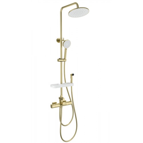 Душевая система с гигиеническим душем и термостатом WONZON & WOGHAND Plate, Брашированное золото (WW-C3017-A1-BG)