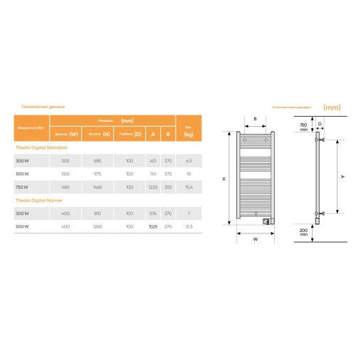 Электрический полотенцесушитель Atlantic Theola Digital WW 500W 97.5х50 002391