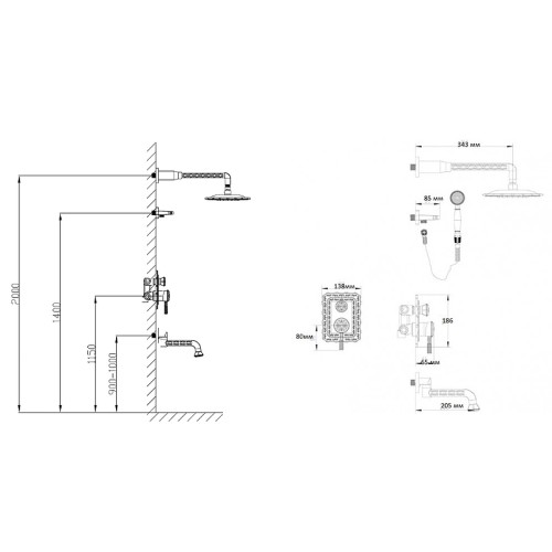 Оснащение Душевая лейка / Шланг для душа / Держатель душа / Кронштейн для верхнего душа / Шланговое подключени
