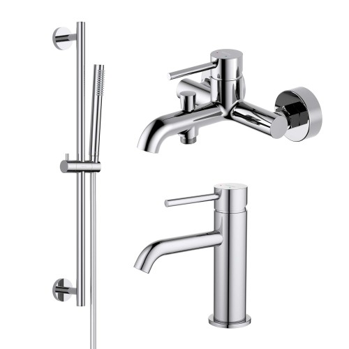 AQ1310CR ЕВРОПА смеситель для раковины 89, без донного клапана + AQ1340CR ЕВРОПА смеситель для ванны + AQ2012CR ЕВРОПА душевой гарнитур 1jet 65 см