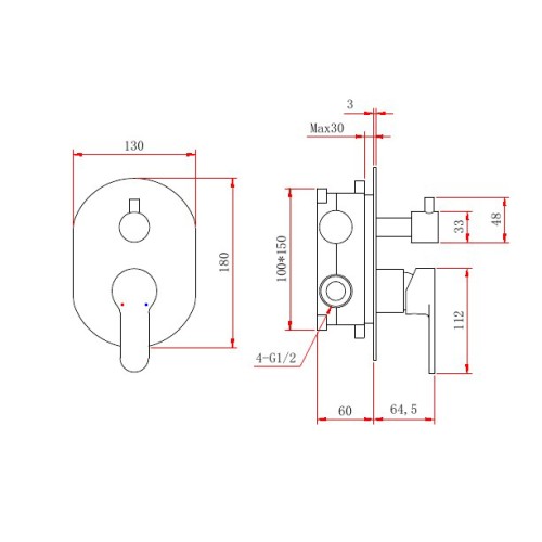 Оснащение Душевая лейка / Шланг для душа / Держатель душа / Кронштейн для верхнего душа / Излив / Душевая штан