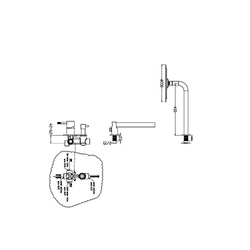 Оснащение Душевая лейка / Шланг для душа / Держатель душа / Кронштейн для верхнего душа / Шланговое подключени