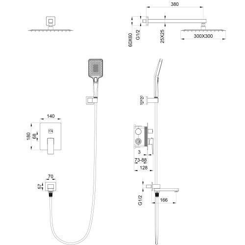 Душевая система встраиваемая WONZON & WOGHAND CUBE 2.0, Темный графит (WW-88939068-BGM)