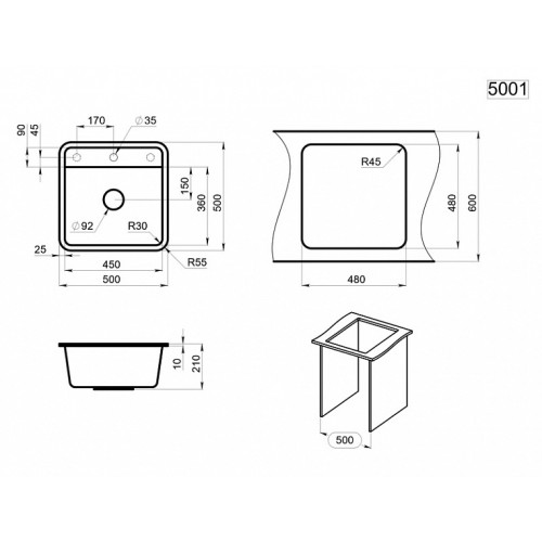 Кухонная мойка Granula Standart 50х50 ST-5001 графит Кухонная мойка Granula Standart 50х50 ST-5001 графит