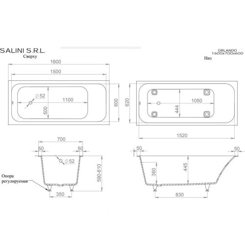 Ванна из литьевого мрамора Salini Orlando 160х70 102015M на ножках