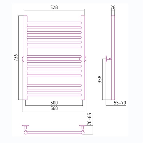 Водяной полотенцесушитель Стилье Универсал-53 80х50 П18