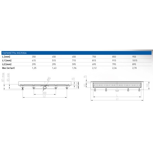 Тип Душевые лотки с решеткой