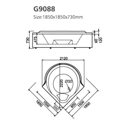 Акриловая ванна Gemy G9088 K 185х185 Акриловая ванна Gemy G9088 K 185х185 Акриловая ванна Gemy G9088 K 185х185