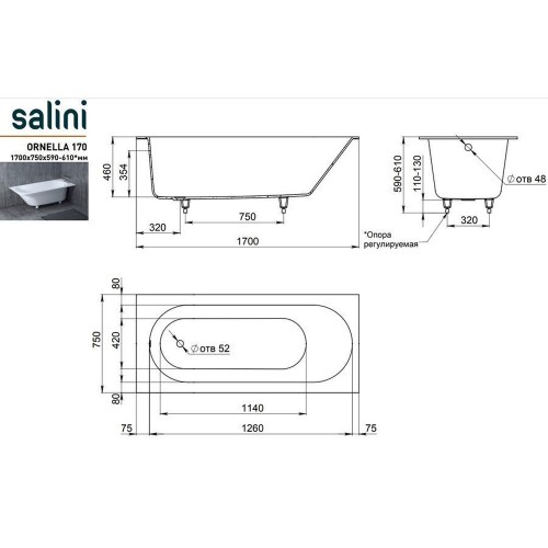 Ванна из литьевого мрамора Salini Ornella 170х75 на ножках