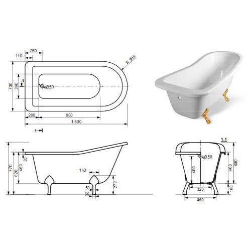 Вид товара Ванна на ножках